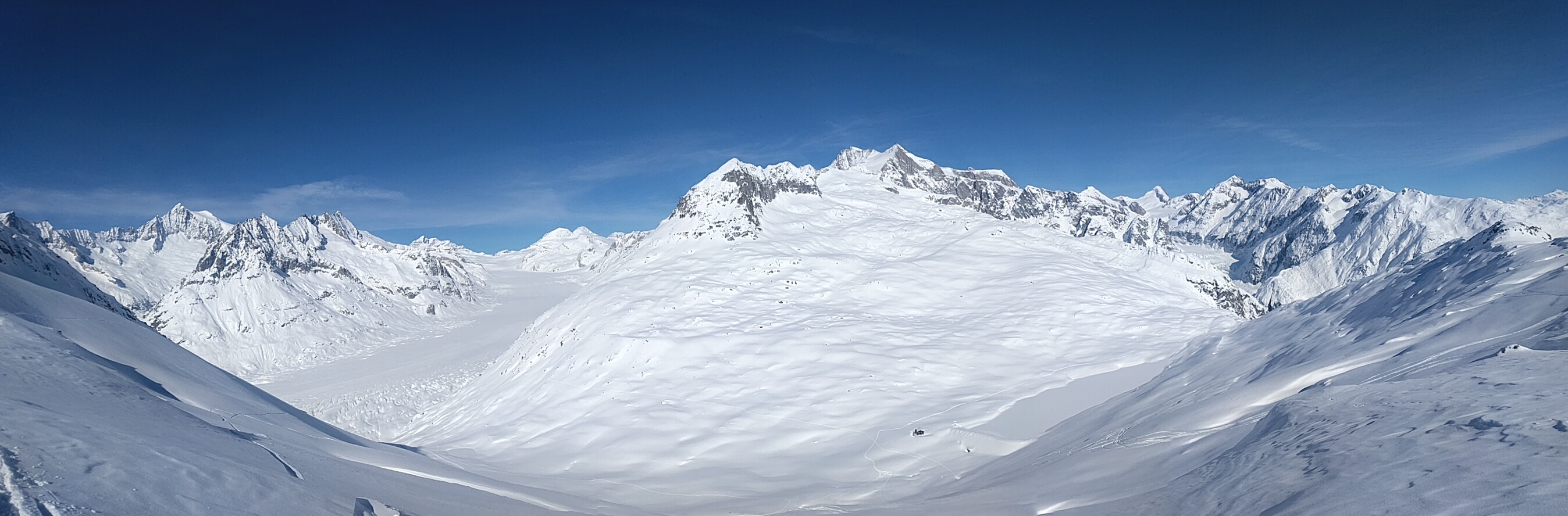 Super schöne Blicke auf den Aletschgletscher im Westen und den Fieschergletscher im Osten.