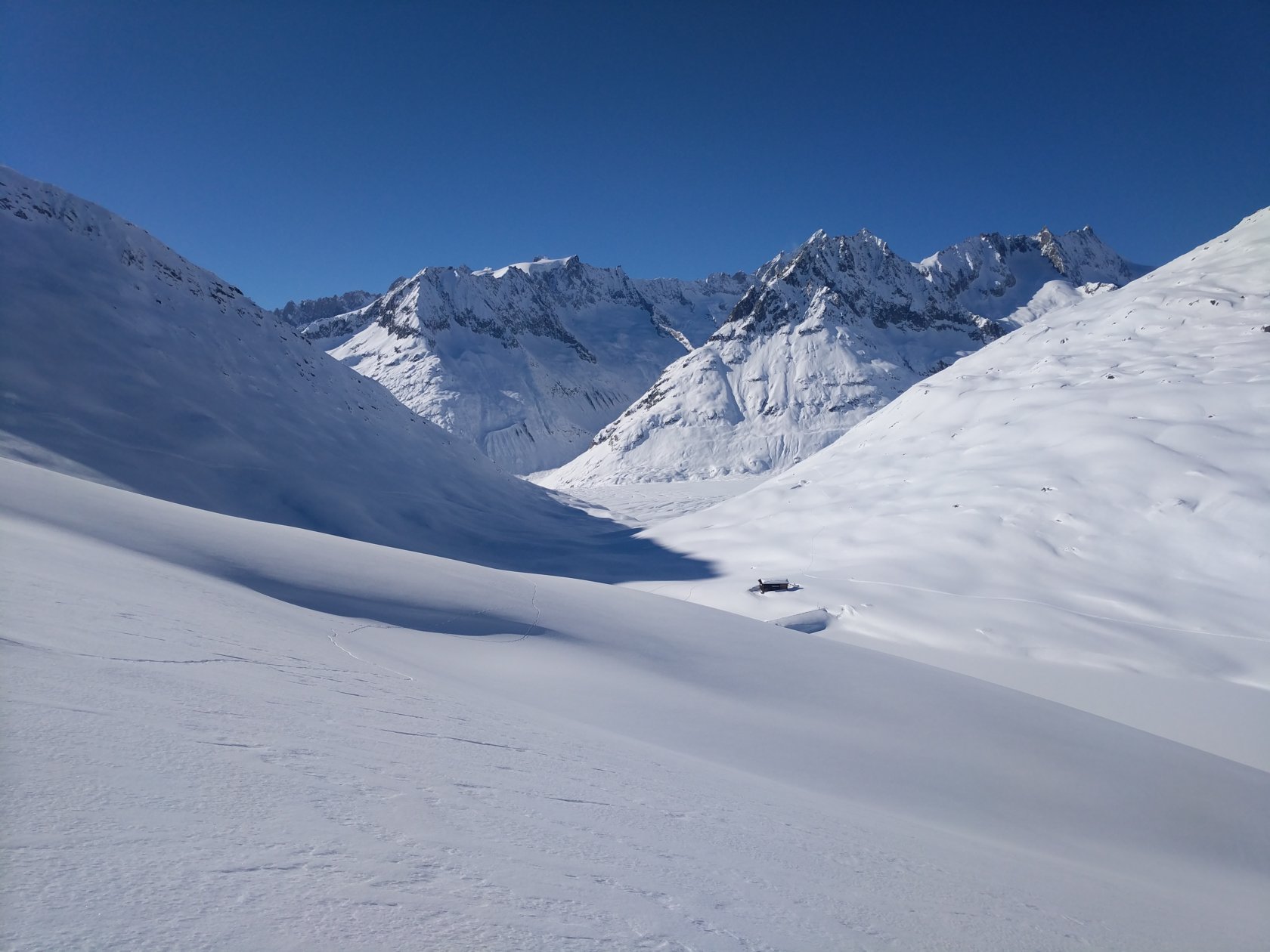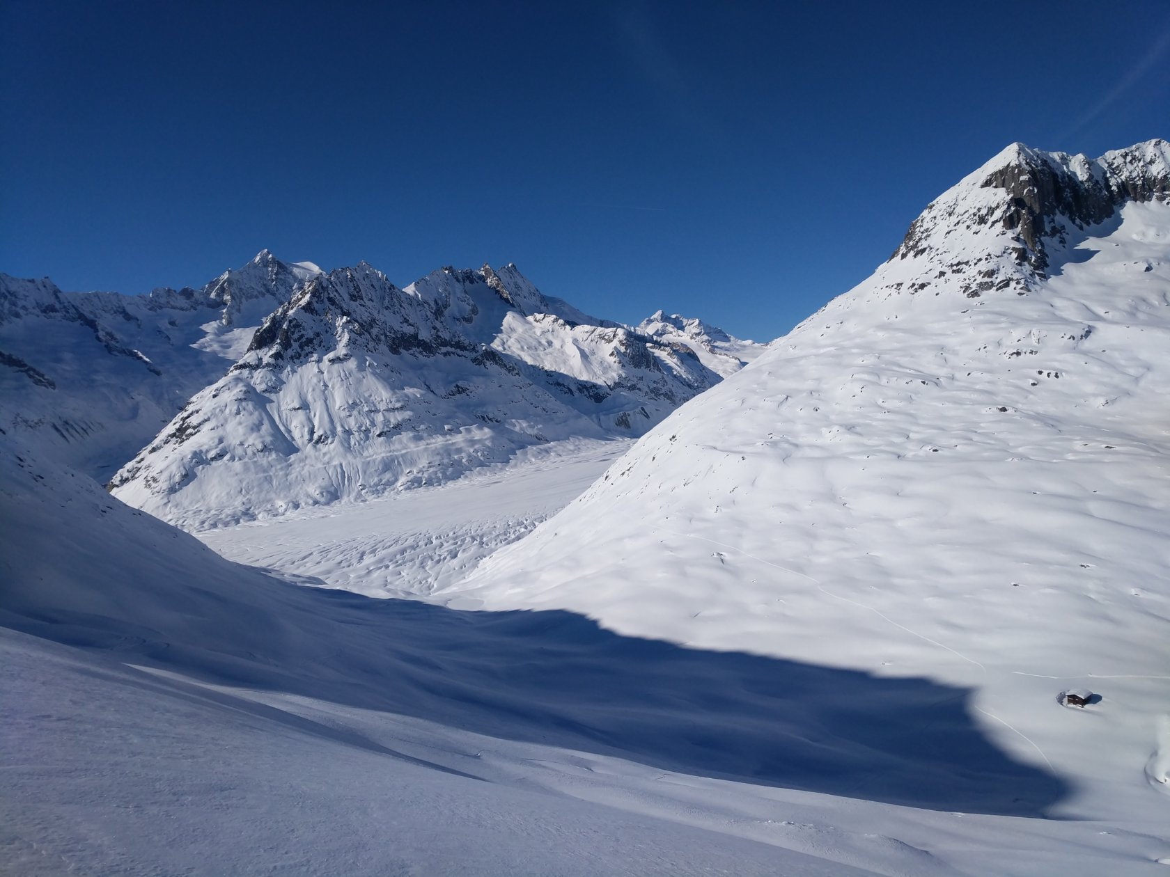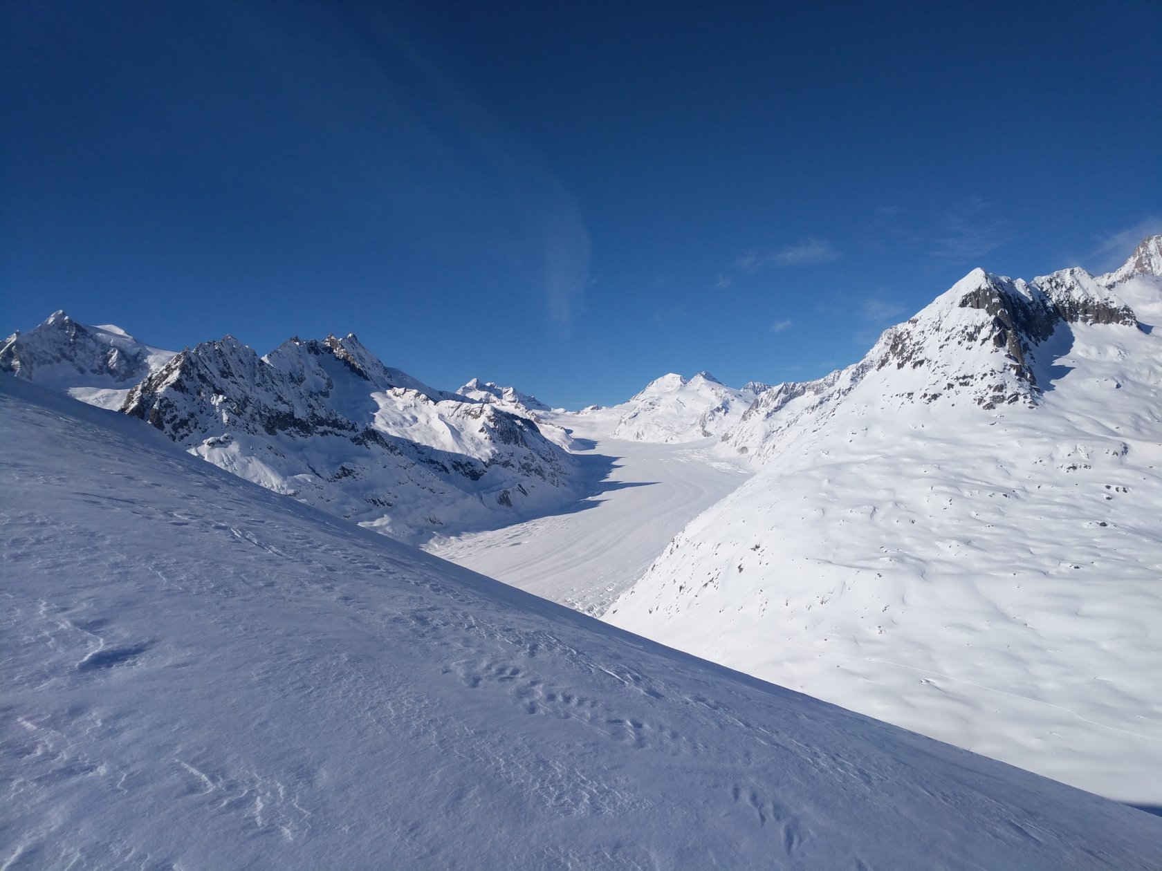 Schon wieder der Alteschgletscher, jetzt unter ca 1 Meter mehr Schnee, vom Bettmerhorn