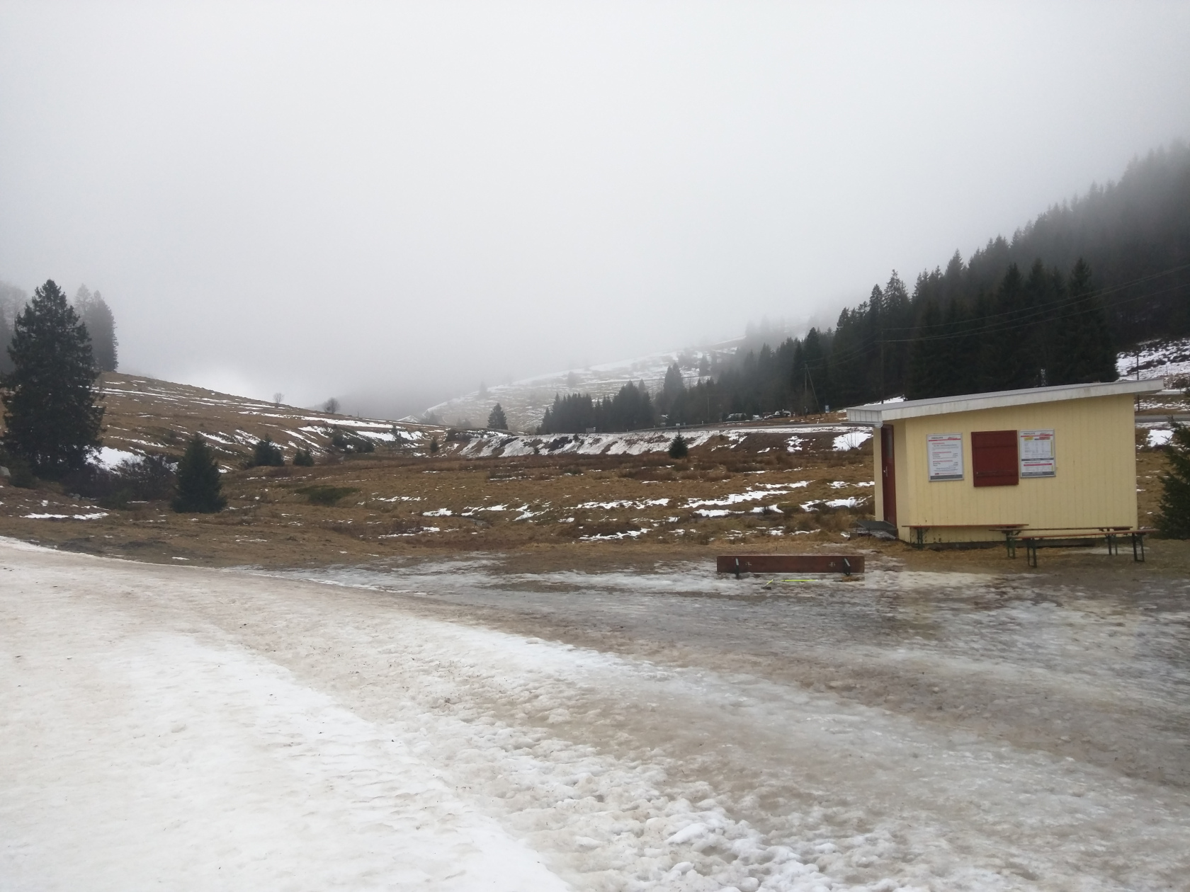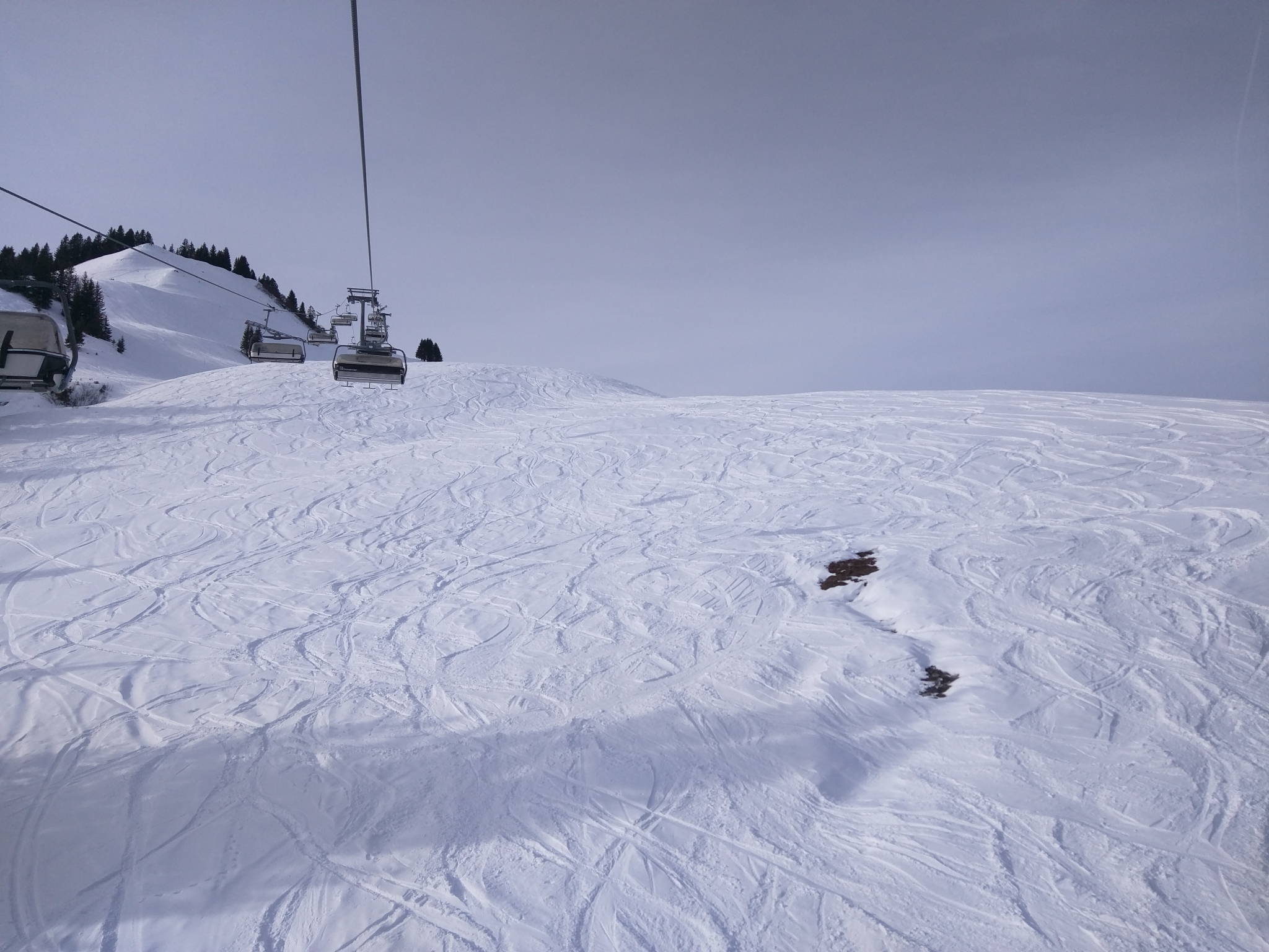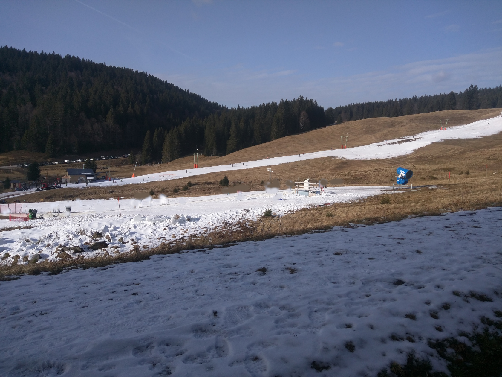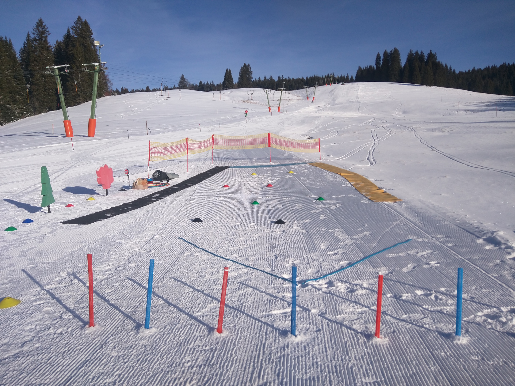 bis Waldrand, immer auch Dank Maschinenschnee und See.