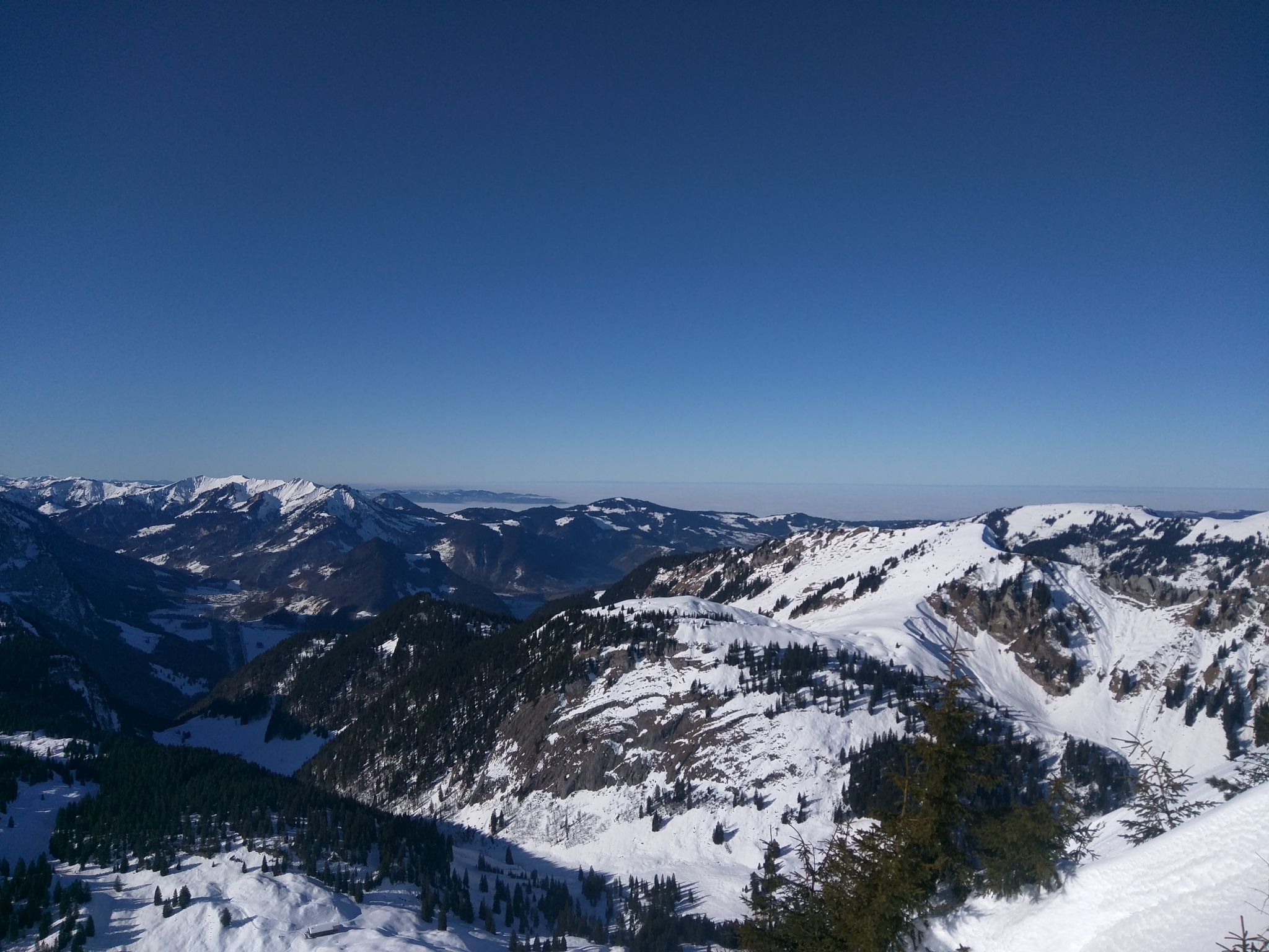 beste Fernsicht mal wieder mit Zugspitze und MontBlanc als Rahmenbedingungen. Eiger. Mönch und Jungfrau. Säntis mit seinen Churfürsten.