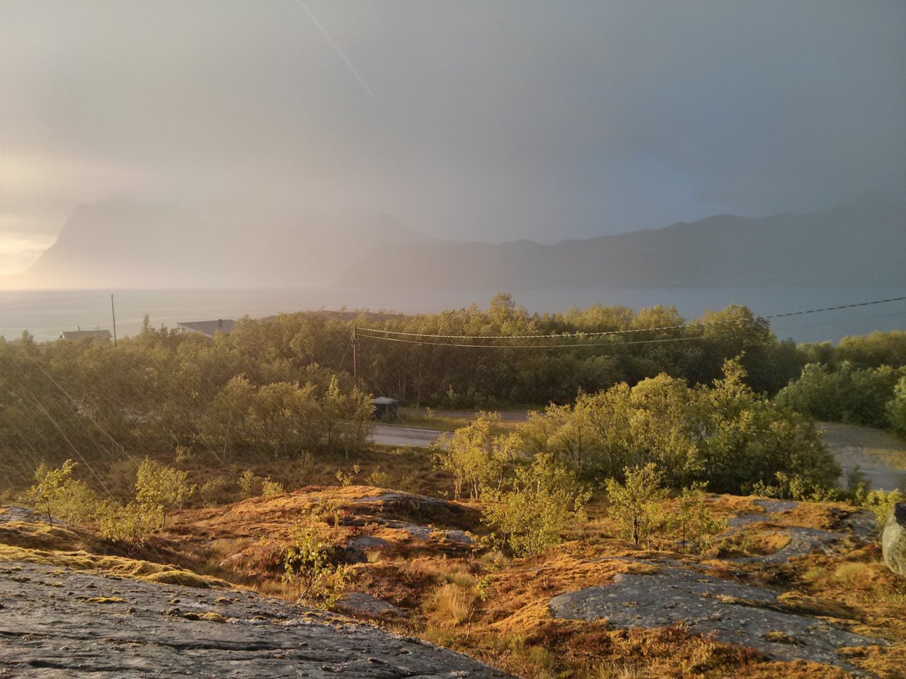 ein Fels zum Zelten kurz vor Kilboghavn, dann mit der Fähre über den Polarkreis nach Jetvik, weiterhin Küstenstraße Nr. 17,