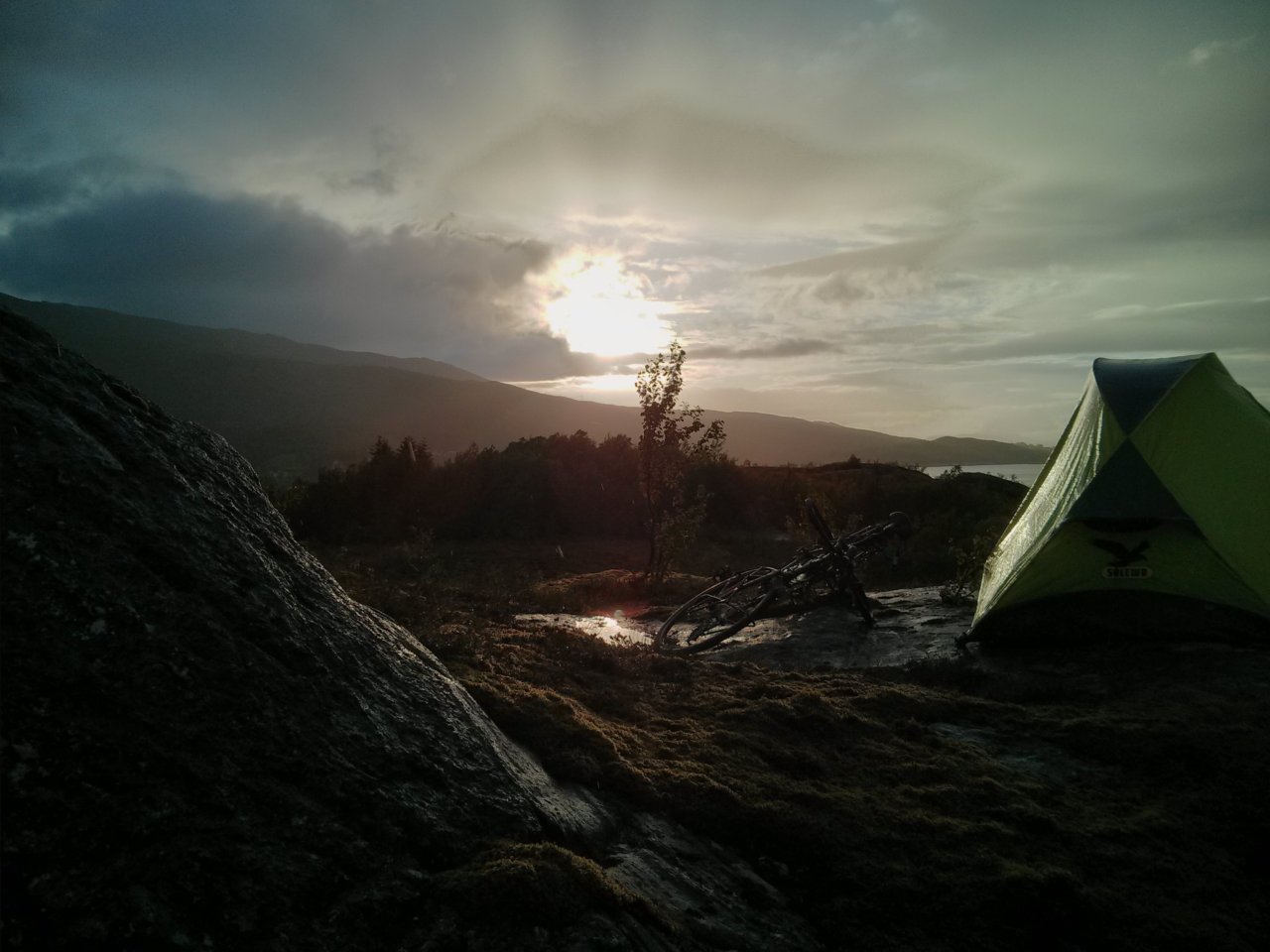 ein Fels zum Zelten kurz vor Kilboghavn, dann mit der Fähre über den Polarkreis nach Jetvik, weiterhin Küstenstraße Nr. 17,