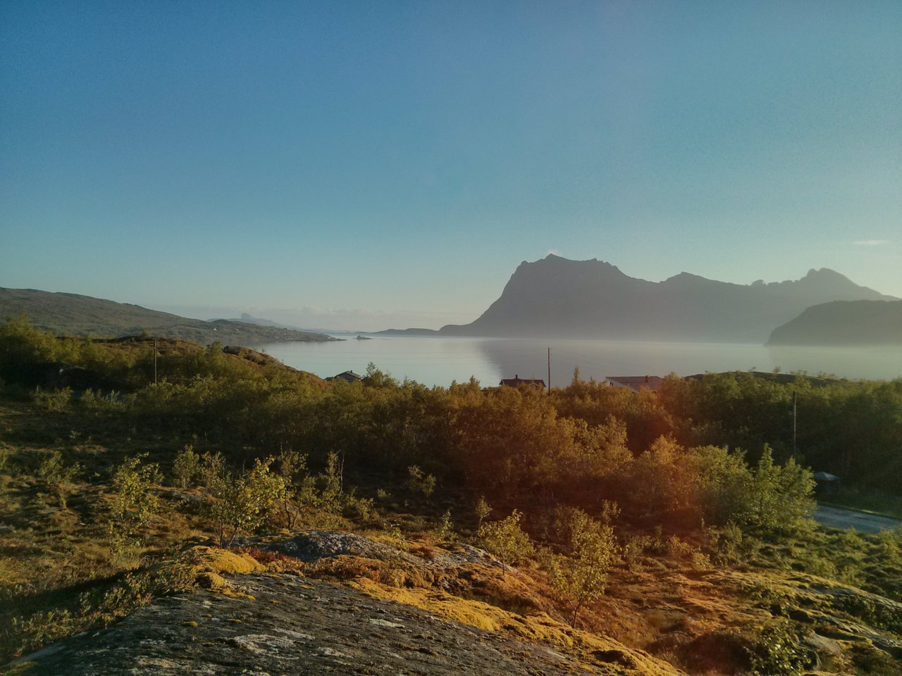 ein Fels zum Zelten kurz vor Kilboghavn, dann mit der Fähre über den Polarkreis nach Jetvik, weiterhin Küstenstraße Nr. 17,