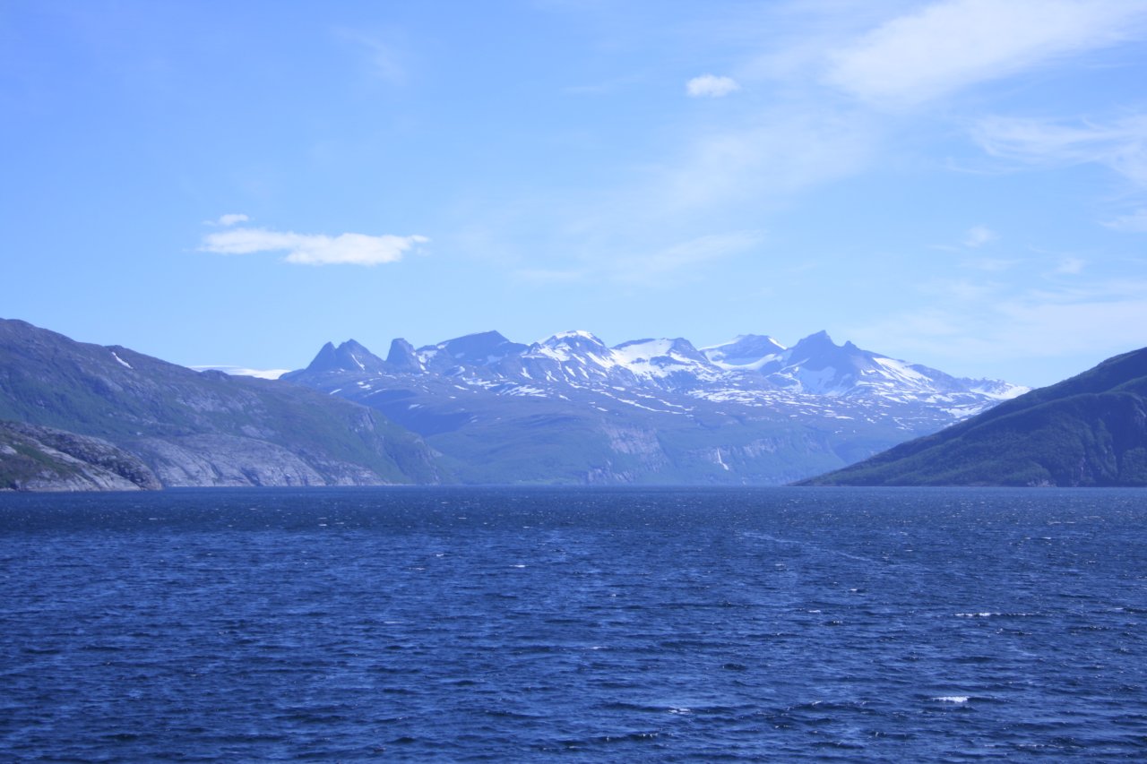 ein Fels zum Zelten kurz vor Kilboghavn, dann mit der Fähre über den Polarkreis nach Jetvik, weiterhin Küstenstraße Nr. 17,