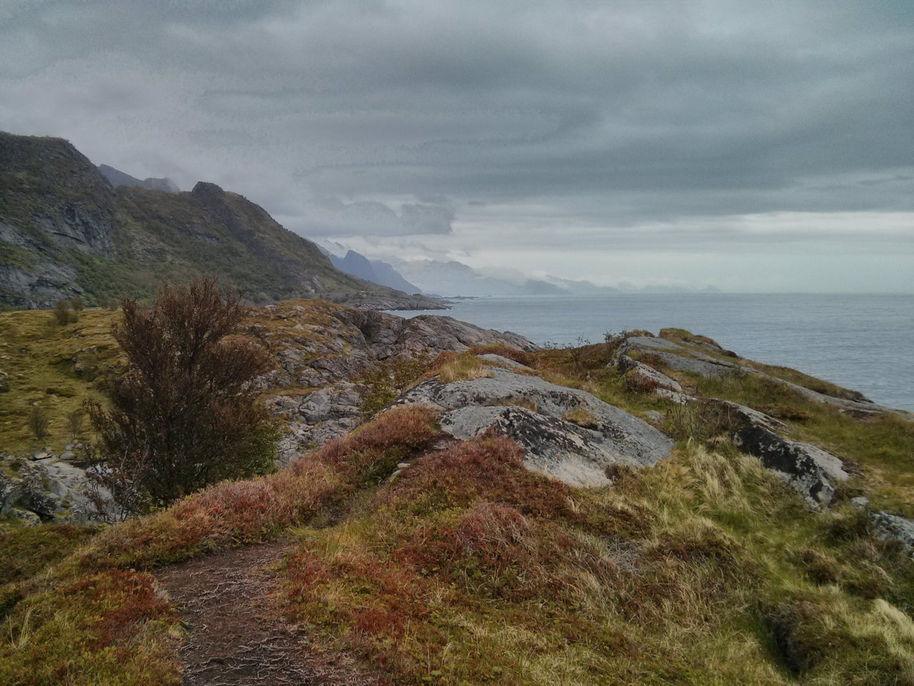 Ausblick von Moskenes nach Norden auf die Lofoten Wand