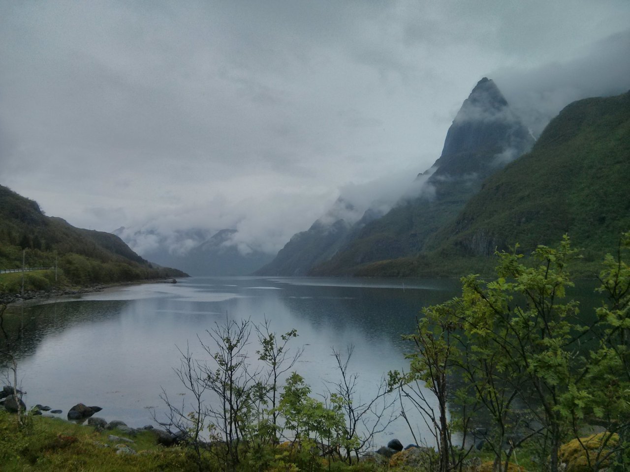 Am Higravfjorden, unweit vom Trollfjorden, Blick auf den Middagshumpen