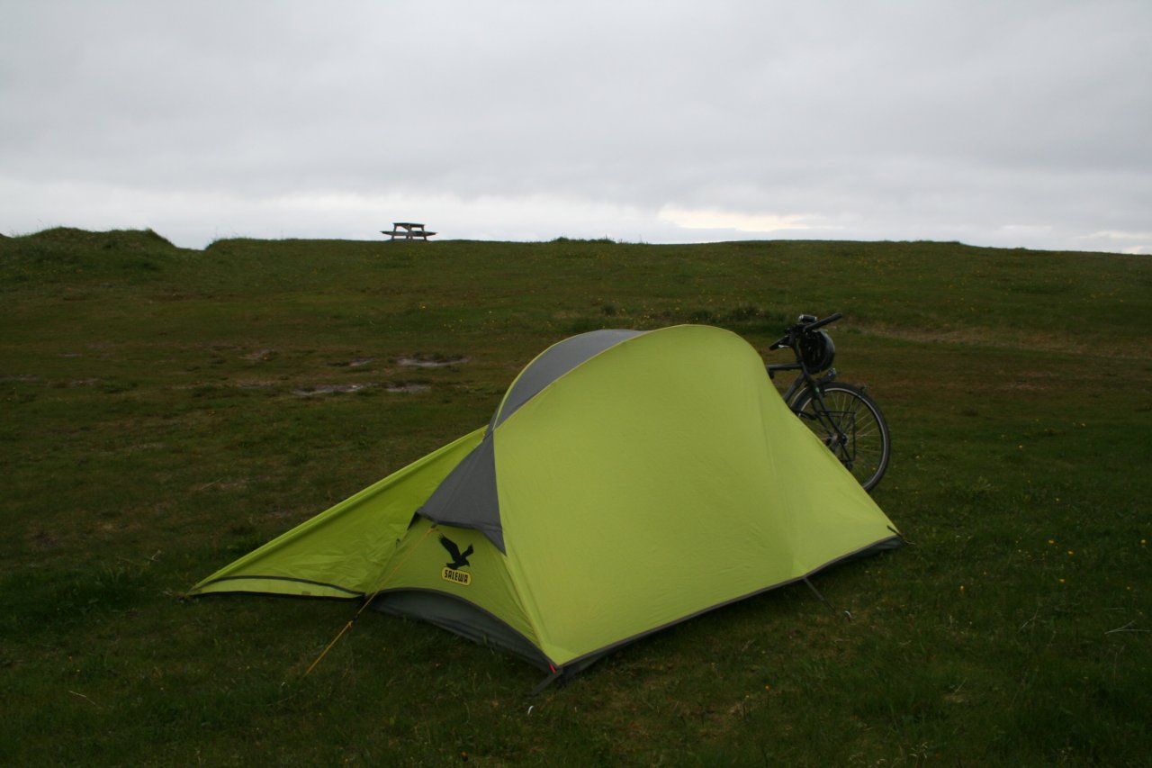 Andenes Zeltplatz am Strand auf Andøya, heranziehender Sturm mit Mitternachtssonne