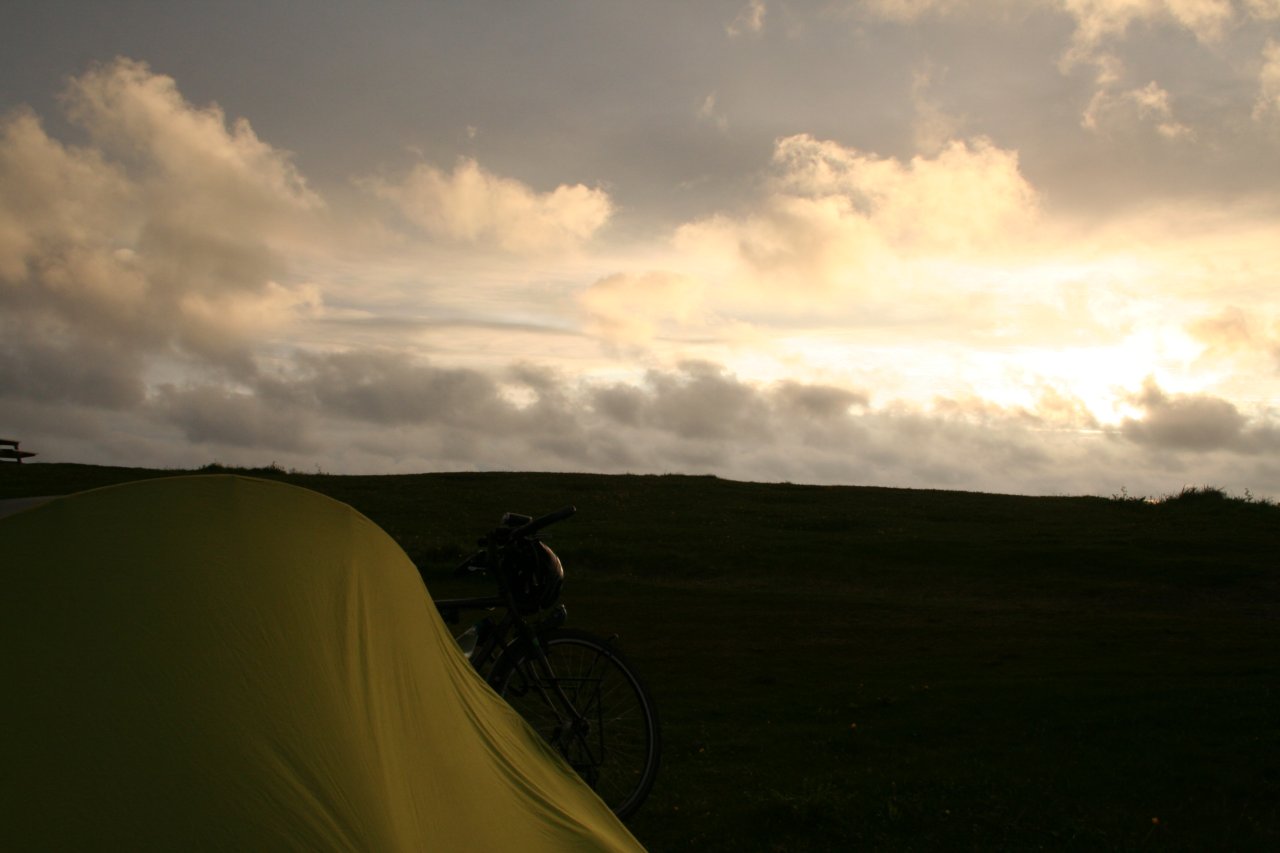 Andenes Zeltplatz am Strand auf Andøya, heranziehender Sturm mit Mitternachtssonne