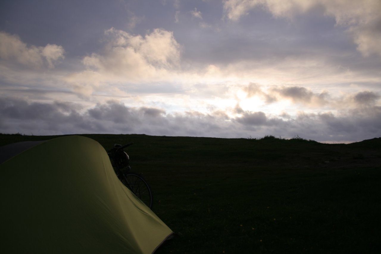 Andenes Zeltplatz am Strand auf Andøya, heranziehender Sturm mit Mitternachtssonne