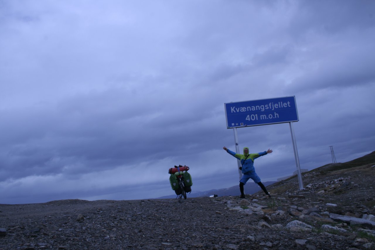Kvænangsfjellet, von 0 auf 401, einer der höheren Punkte der E6 im hohem Norden, Schneereste halten sich eisern, kein Wunder bei dem Wetter...