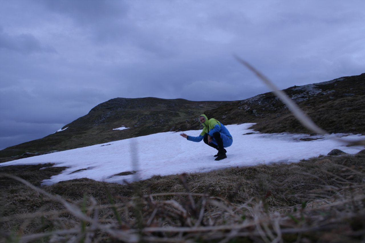 Kvænangsfjellet, von 0 auf 401, einer der höheren Punkte der E6 im hohem Norden, Schneereste halten sich eisern, kein Wunder bei dem Wetter...